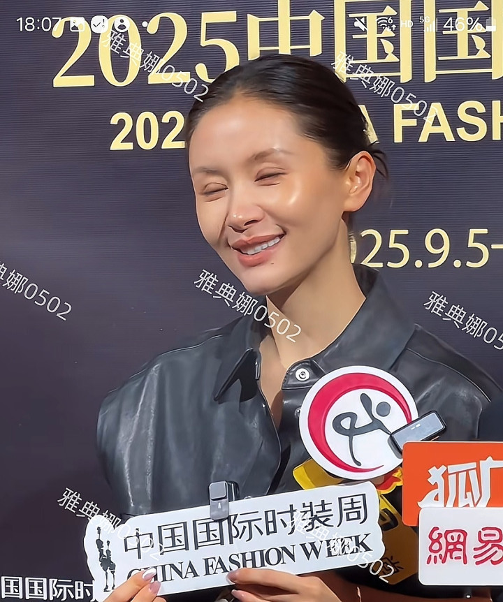 在北京展览馆参加时装周时,遇到了很喜欢的女明星王子文,本人气质好特别,瘦瘦白白小小一只,今天穿了一身皮衣的她走的是甜辣酷飒风,但她过于娇小的身材即使穿了十几厘米的高跟鞋,长长的皮裤也拖到地上,虽然脸很美,但身高有点儿撑不起来。