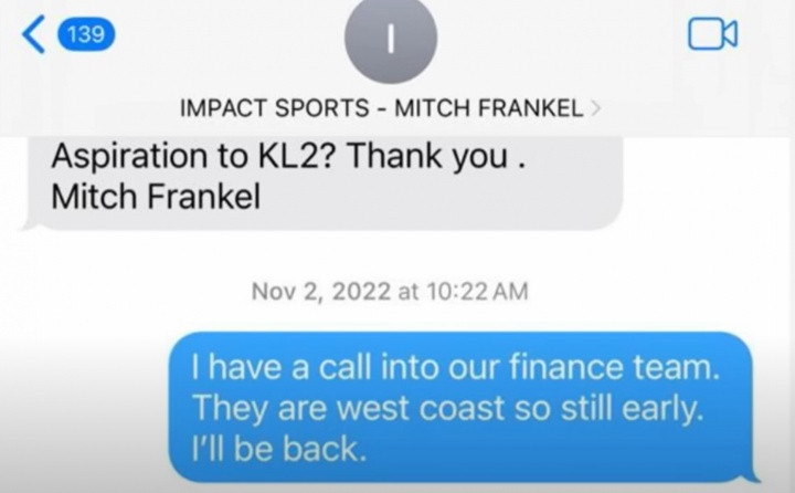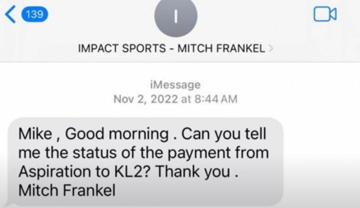 Torre晒出了几段手机短信截图,内容是莱昂纳德经纪人米奇-弗兰克尔向Aspiration公司的法律顾问了解给莱昂纳德付款的情况。这意味着莱昂纳德存在场外虚假代言的阴阳合同一事,并非莱昂纳德舅舅丹尼斯-罗伯森一人所为,莱昂纳德经纪人也了解其中的情况。