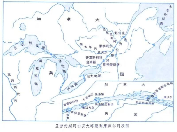 五大湖如此巨量的淡水总量,其湖水经过圣劳伦斯河注入大西洋,而圣劳伦斯河却是一条相对不大的河,从源头到出海口经过五大湖,年径流量只有4390亿立方米,与五大湖巨量的水量比,真是不值一提。