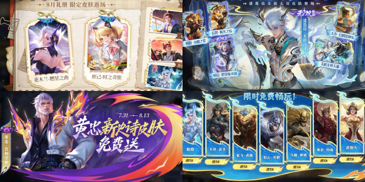 那么首先就是皮肤限免活动,除了全英雄和全直售皮肤限免之外,还有10款精选限定皮肤。