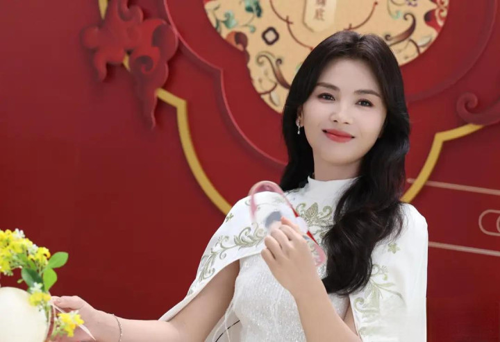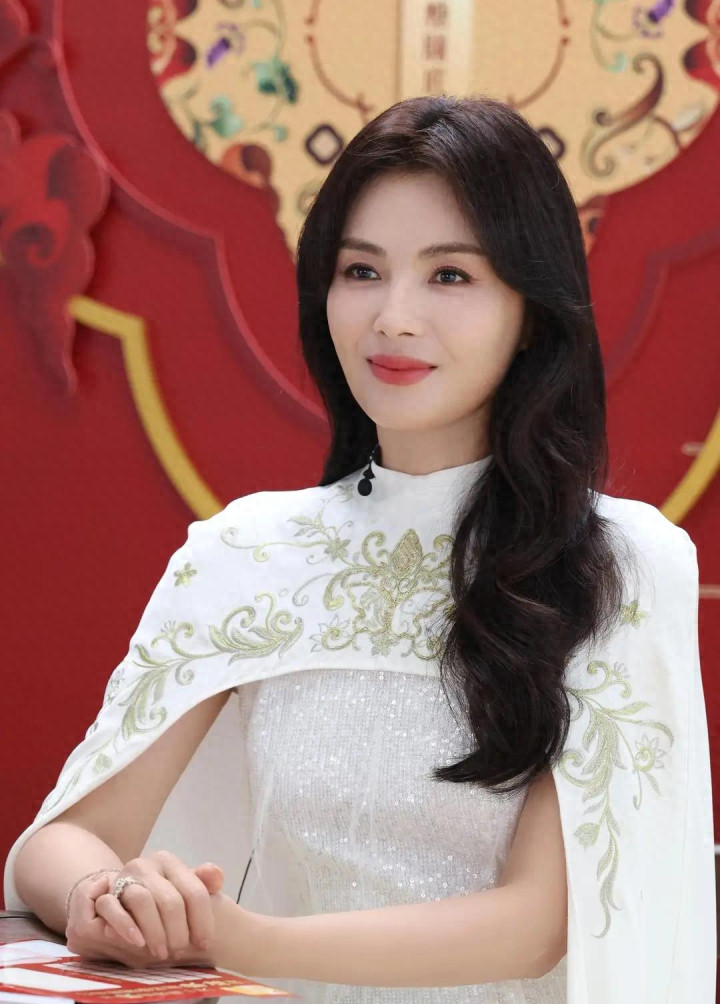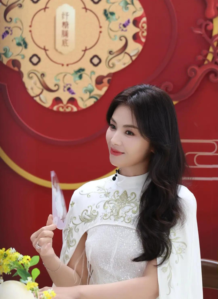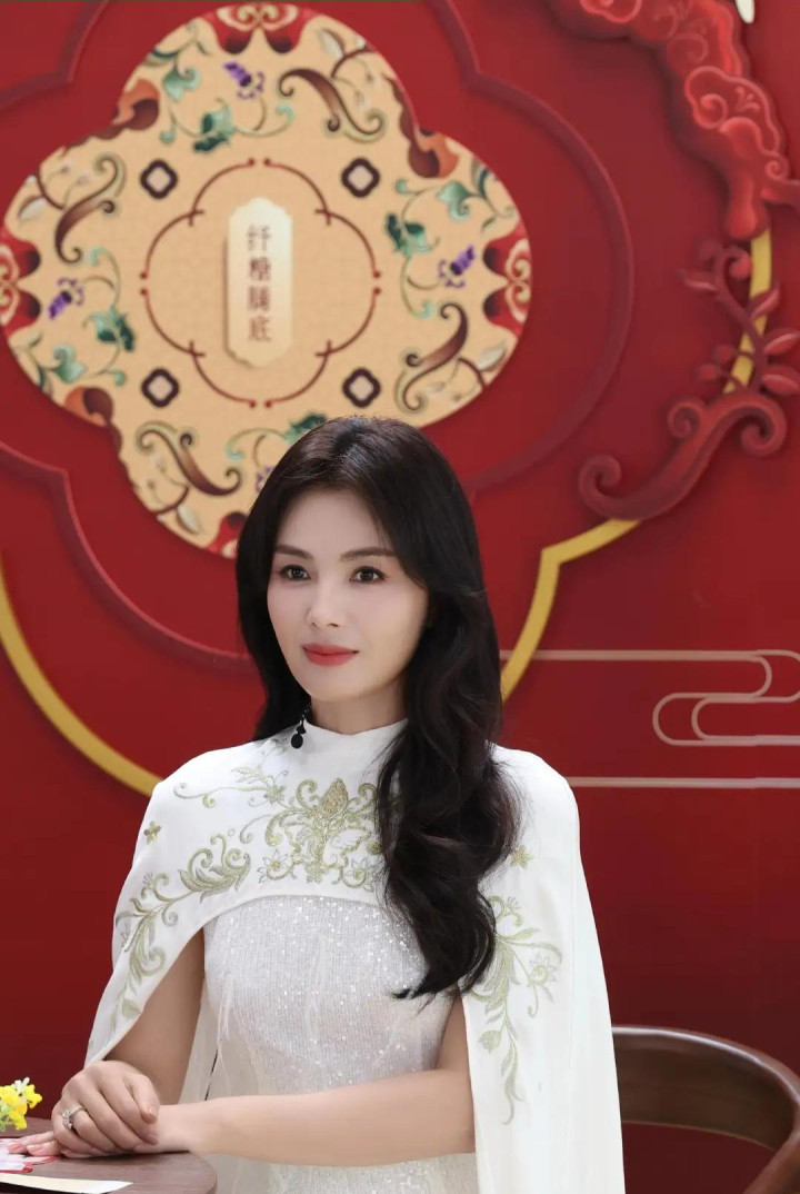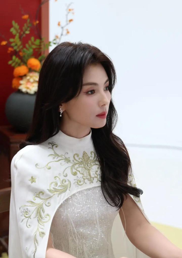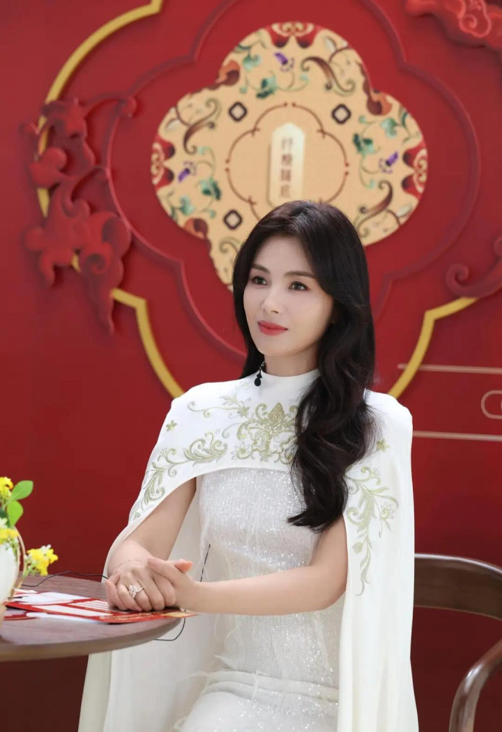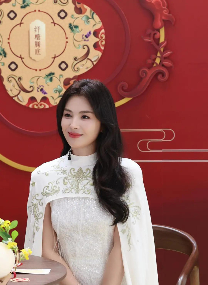 刘涛穿白色国风披肩连衣裙, 优雅诠释东方美
