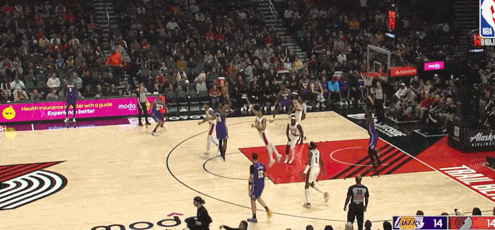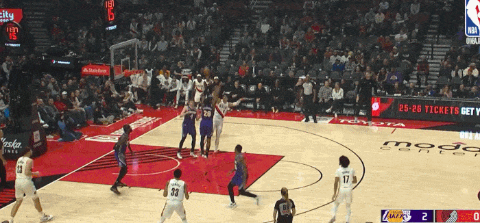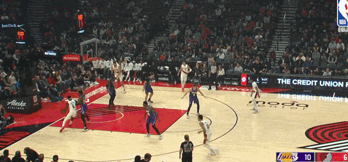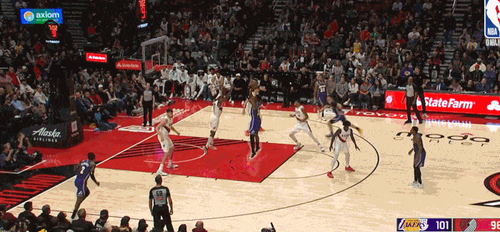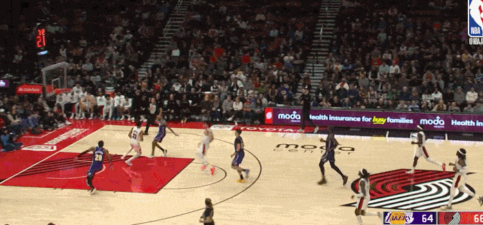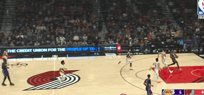 面对开拓者的退防不及时 抓住快攻转换机会 完成终结